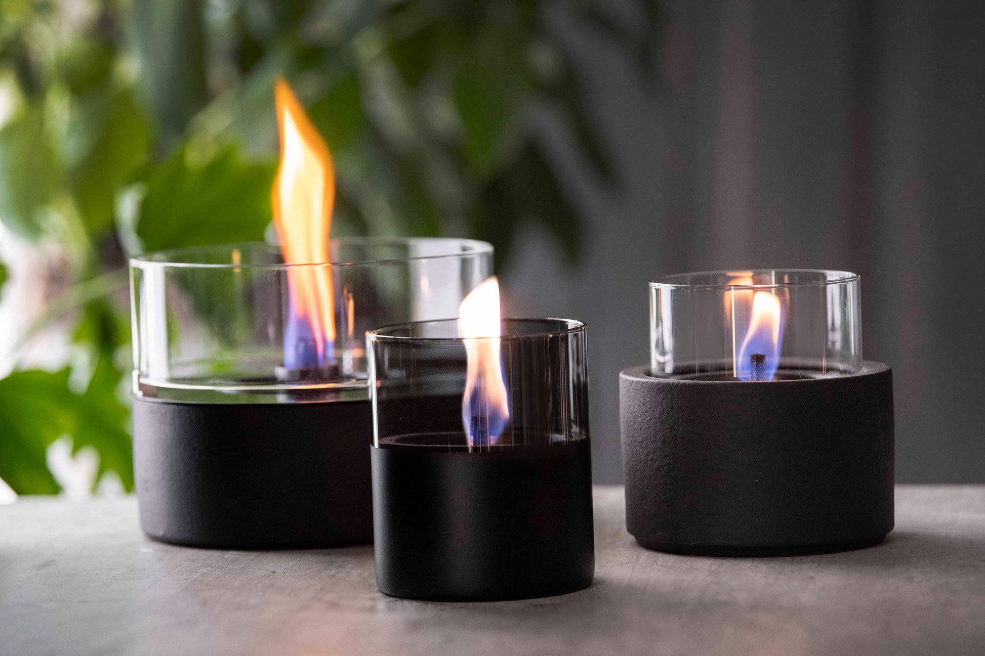 Met zijn duurzame MgO-basis, glanzend glas en drie roestvrijstalen lonten creëert hij een betoverend vlammenspel voor elk interieur.