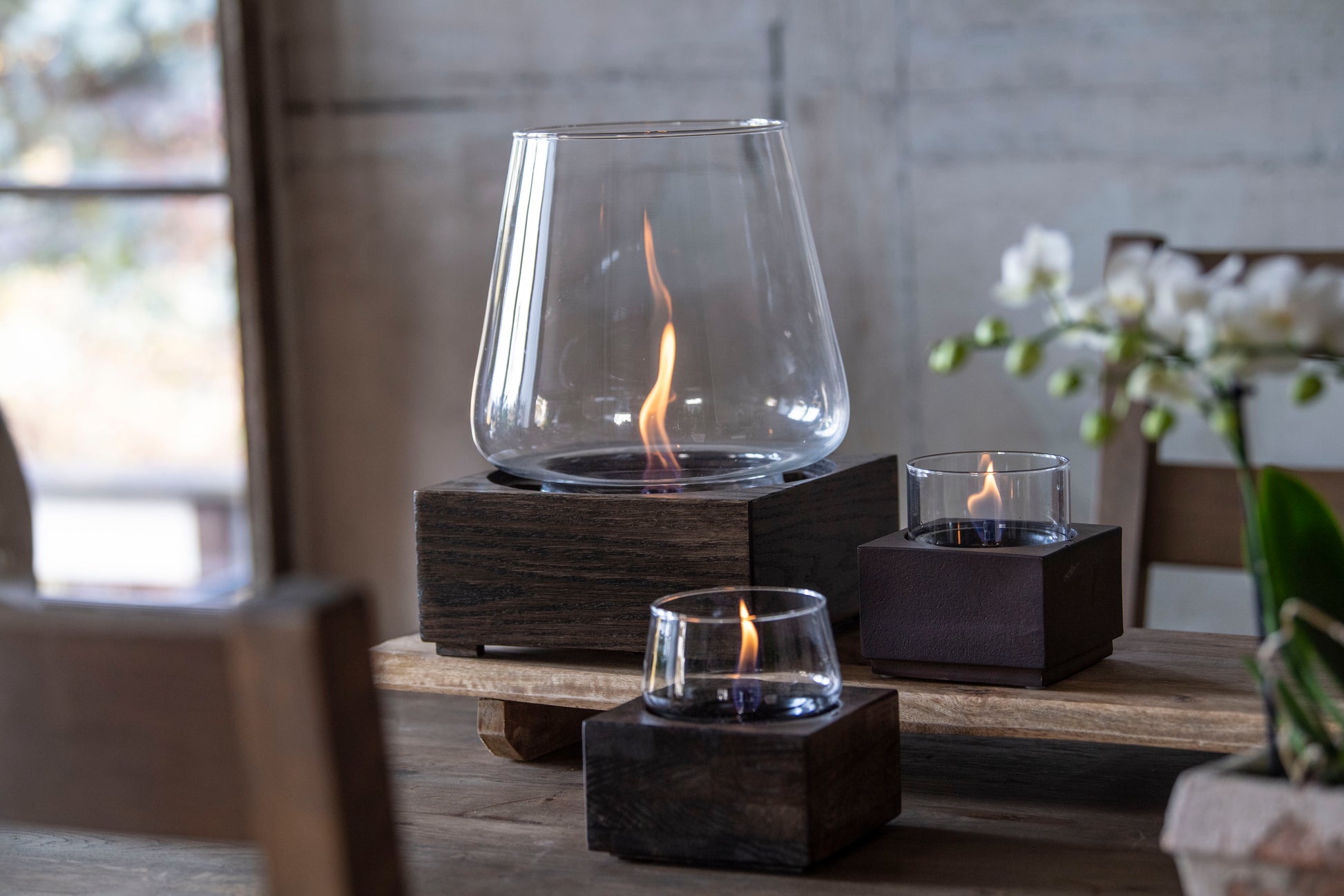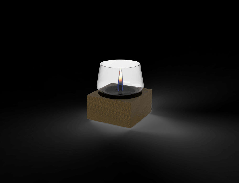 Gemaakt van puur gecertificeerd eikenhout en voorzien van één lont die een zachte, kaarsachtige vlam creëert.